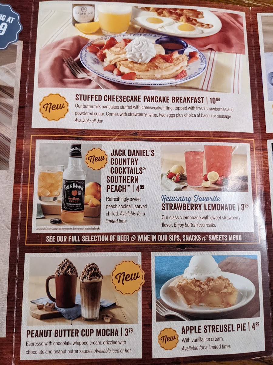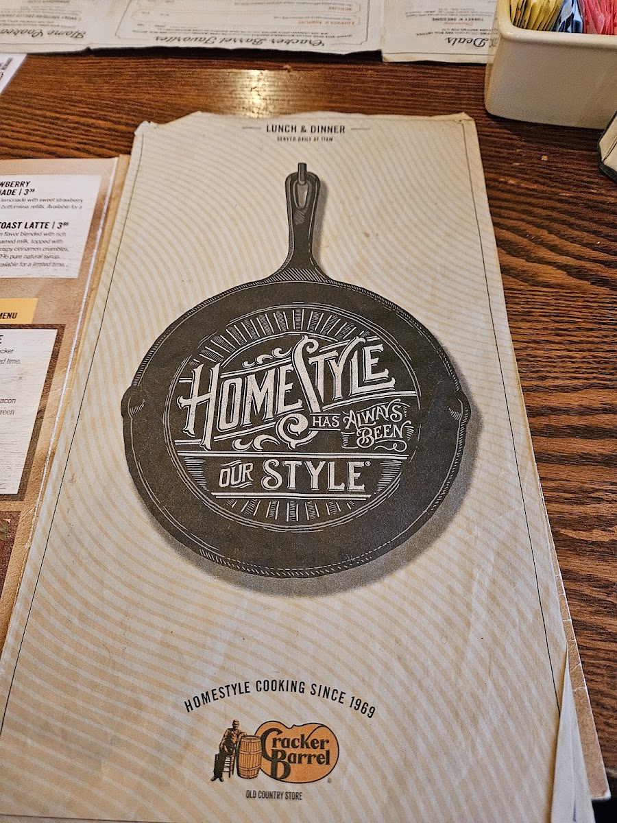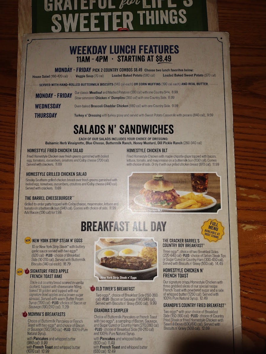 Introducing the Menu at Cracker Barrel Old Country Store, Wilson, NC