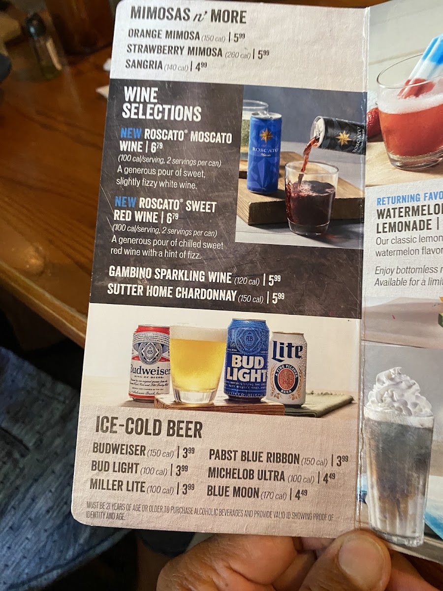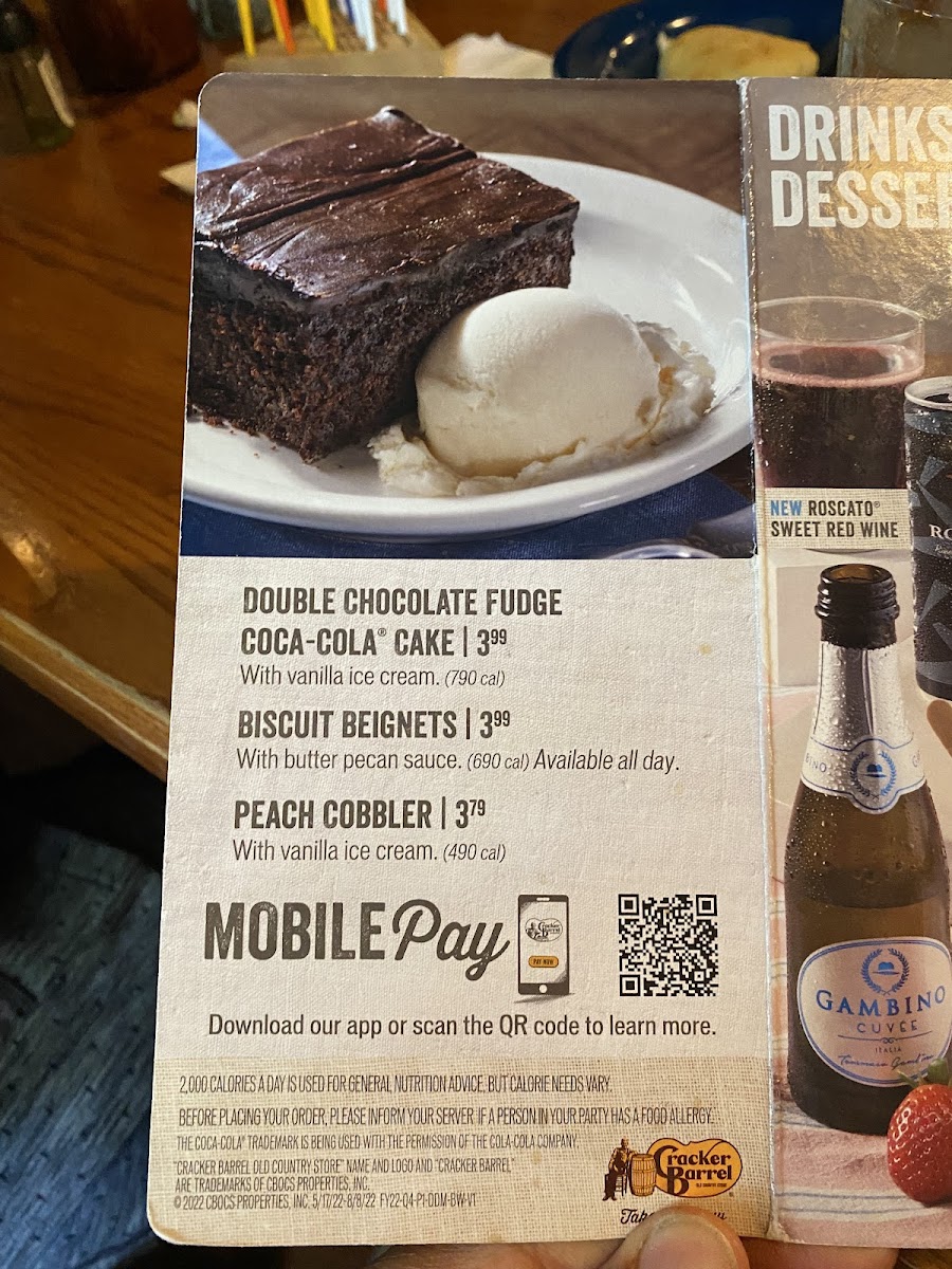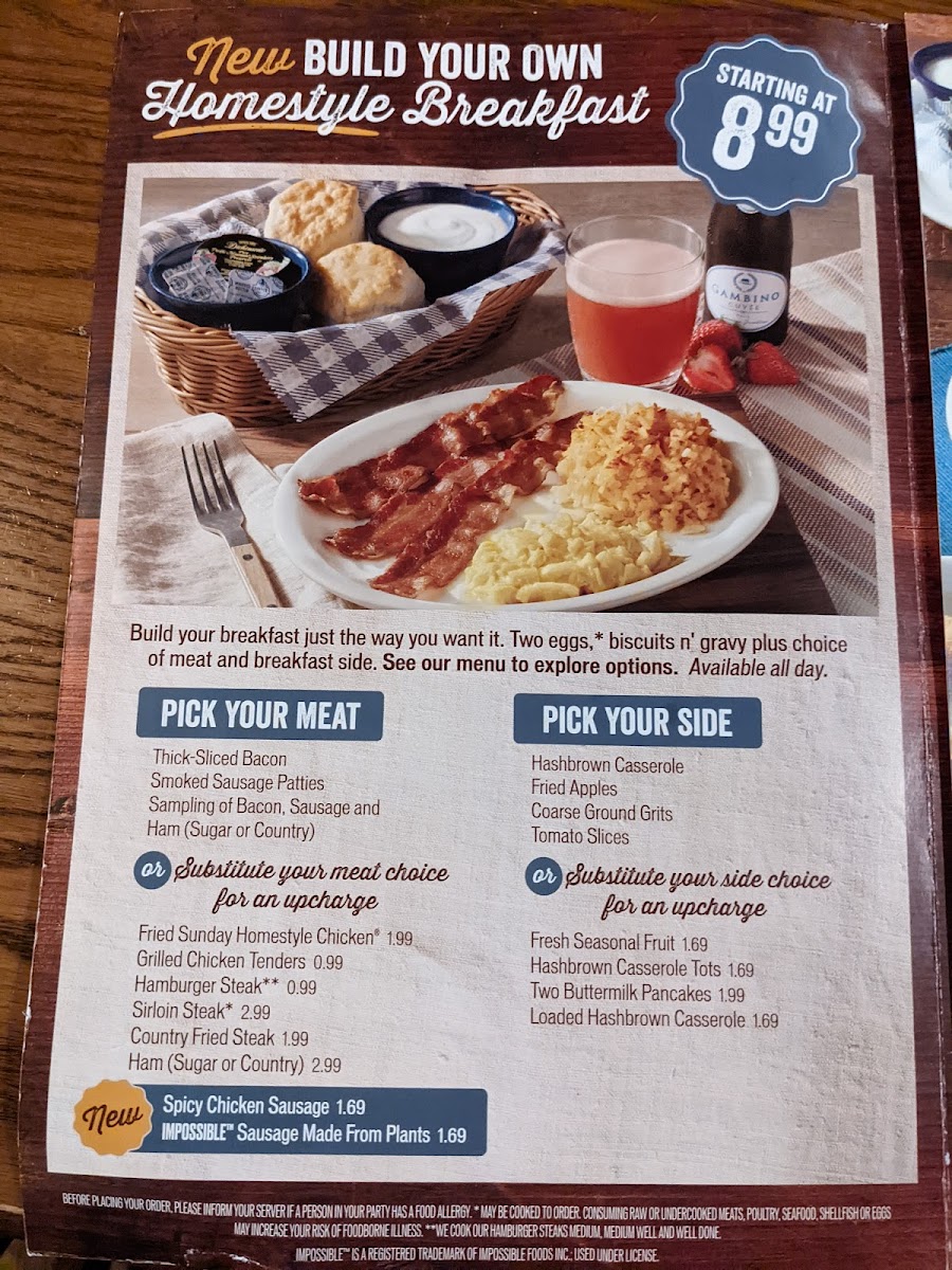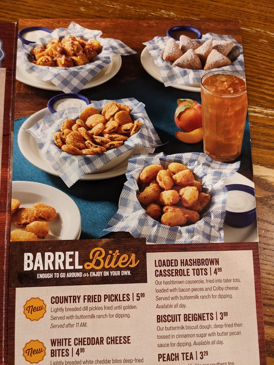 Introducing the Menu at Cracker Barrel Old Country Store, Wilson, NC